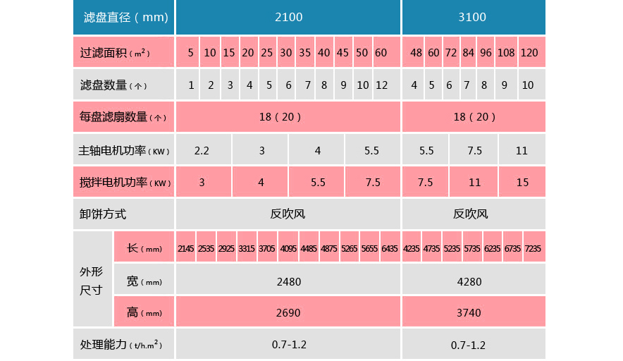 PG系列盤式真空過(guò)濾機(jī) (1)扇形濾板脫水孔分布均勻,孔率合理,筋條尺寸大,由高強(qiáng)度工程塑料制成,壽命提高了2-3倍。 (2)濾液管過(guò)濾數(shù)面大,分配頭腹腔容積大,提高了抽氣率和濾液排放效果。 (3)耐磨錦綸、單或復(fù)絲濾布使脫餅率高且不易堵塞,使用壽命長(zhǎng)。 (4)多點(diǎn)干油泵集中多點(diǎn)自動(dòng)潤(rùn)滑。 (5)濾布自動(dòng)清洗裝置,保持了其良好的脫水效果。 (6)臥式強(qiáng)制高速攪拌、軸端采用橡膠及石墨盤根和水壓差三重密封不漏漿。 (7)主傳動(dòng)無(wú)級(jí)變速,依物料的濃度及流量調(diào)節(jié)(交流調(diào)速電機(jī)或變頻器),以求達(dá)到理想的工作效果 。 (8)每盤由20片扇形板組成,加強(qiáng)了過(guò)濾過(guò)程控制,成餅厚度均勻。 (9)磨擦片采用特制耐磨硼鑄鐵,剛?cè)嵯酀?jì)密封佳,使用壽命達(dá)到十年以上。 (10)濾液管為高強(qiáng)度耐磨陶瓷復(fù)合鋼管,提高壽命10倍以上。 (11)濾液管與濾扇接口去掉下法蘭,采取模具定位直接焊接,減少了90%可能的漏氣點(diǎn)。