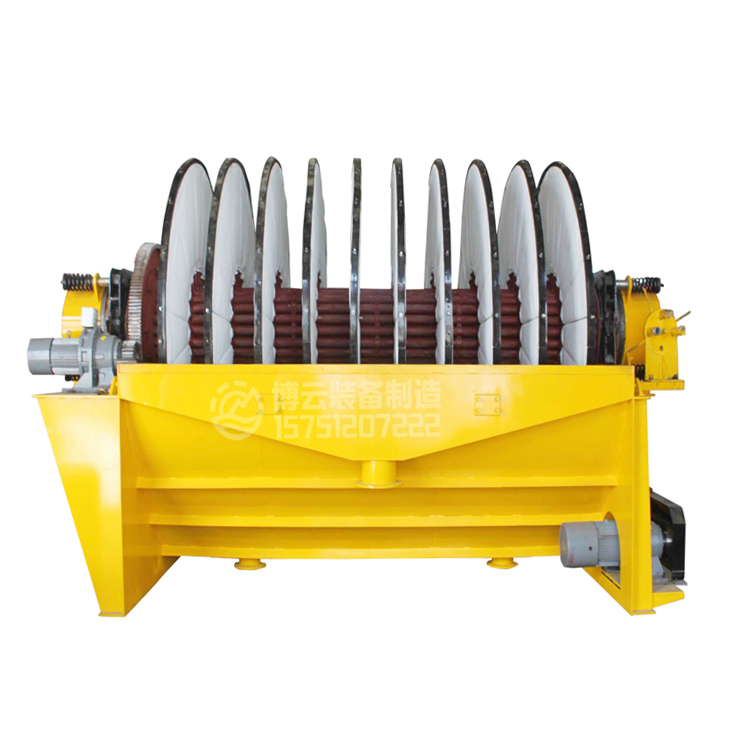 盤式真空過(guò)濾機(jī)由各個(gè)單獨(dú)的扇形片的圓盤構(gòu)成。每一個(gè)扇形片為 單獨(dú)的過(guò)濾單元,由濾布做成布套在扇形片上形成濾室。過(guò)濾盤由電機(jī)通過(guò)減速器及開式齒輪傳動(dòng)來(lái)驅(qū)動(dòng) ,過(guò)濾盤順時(shí)針方向轉(zhuǎn)動(dòng),濾室里的礦漿在吸附區(qū)借助于真空泵在過(guò)濾介質(zhì)兩側(cè)形成的壓力差,附著在過(guò) 濾盤上形成濾餅后,攪拌器旋轉(zhuǎn)防止固體沉淀,濾餅離開液面后,在真空作用下繼續(xù)脫去水分。濾液透過(guò) 濾布,經(jīng)過(guò)濾液管,從分配頭排出。濾餅在卸料區(qū)由反吹風(fēng)卸料落入排料槽,整個(gè)作業(yè)過(guò)程連續(xù)循環(huán)進(jìn)行 。